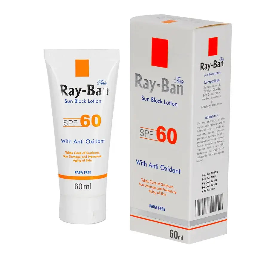 RAY-BAN FORTE SPF 60 SUN BLOCK LOTION (With Anti Oxidant, Takes Care of Sunburn, Sun Damage and Premature Aging of Skin)